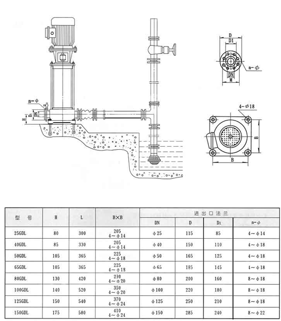 GDL立式管道離心泵安裝尺寸及示意圖(此示意圖是引水示意圖)